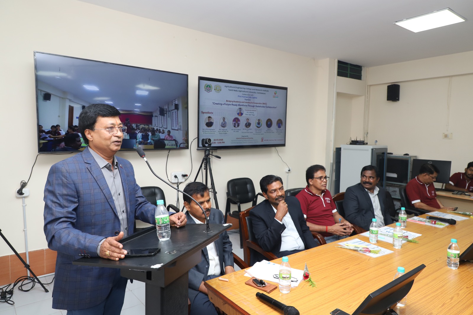 The Bridging Academia and Industry for Cooperation (BAIC) Workshop 2025 was successfully conducted on 22nd March 2025 (Saturday), from 2:00 PM to 4:30 PM at the Conference Hall, Agricultural Engineering College and Research Institute, Coimbatore. This prestigious event was jointly organized by Tamil Nadu Agricultural University (TNAU) and First Job Human Capital, focusing on “Creating a Future-Ready Workforce Through Stakeholder Collaboration.”